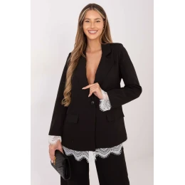 Elegantní dámský sako je skvělou volbou na návštěvy a stylové události, kde záleží na eleganci a efektních detailech. Jeho klasický tvar s límci je doplněn ozdobnými prvky, které celku dodávají jedinečný charakter. Model je vyroben z kombinace polyesteru a elastanu, díky čemuž materiál jemně pracuje, poskytuje pohodlí a zároveň vypadá elegantně a uklizeně. Sako má také podšívku, která zvyšuje pohodlí nošení a zaručuje vysokou kvalitu zpracování. Na ramenou jsou vsazeny polštářky, které jemně modelují siluetu a zdůrazňují formální, návštěvní charakter sak. Efektní aplikace s džety je dominujícím ozdobným prvkem, dodávajícím lesk a modernost. Sako má standardní délku a dlouhý rukáv zakončený krajkou dodává celku ženský a jemný výraz. Spodní část saka je také zdobena krajkou, co vytváří souvislý a elegantní efekt. Přední část se zapíná na knoflík, co zdůrazňuje klasický, ale zároveň lehký charakter modelu. Je to stylová nabídka pro ženy, které oceňují eleganci s nádechem výrazného, večerního lesku ideální na slavnostní události, recepce a večerní vycházky.