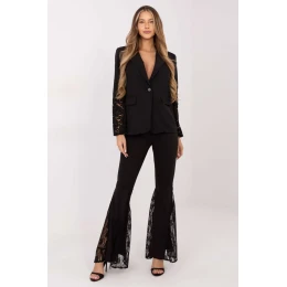 Elegantní dámský sako s hladkým povrchem je stylovým návrhem, který se skvěle hodí jak na společenské události, tak na večerní vycházky. Vyrobený z vysoce kvalitní směsi polyesteru a elastanu, poskytuje pohodlí nošení a ideální přizpůsobení postavě. Model má standardní délku a klasické zapínání na knoflík, které zdůrazňuje jeho nadčasový charakter. Vložené polštářky na ramenou dodávají sakru výraznosti, elegantně tvarují ramenní linii. Výjimečným akcentem je rukáv, od lokte z jemné krajky, která do celku vnáší jemný, ženský prvek a dodává celku nezaměnitelný půvab. Je to ideální volba pro ty, kteří ocení eleganci s nádechem originality.