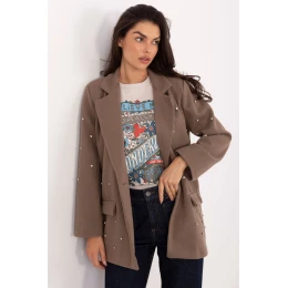 Elegantní dámský sako s elegancí, vytvořený s ohledem na návštěvy a party stylizace. Model se vyznačuje jedinečným zdobením, zirkony umístěné na přední části saka a na rukávech, dodávají mu luxusní lesk a přitahují pohledy. Sako je vyrobeno z kombinace polyesteru a viskózy, co zajišťuje trvanlivost materiálu, estetický vzhled a pohodlí nošení. Standardní délka z něj dělá univerzální střih, který se skvěle hodí jak k šatům, tak k elegantním kalhotám. Odstřižené límce zdůrazňují klasický charakter modelu, a vestavěné polštářky na ramenou dodávají postavě výrazný tvar a elegantní proporce. Model má podšívku, díky čemuž se perfektně přizpůsobuje tělu a zaručuje pohodlí po celou dobu nošení. Je to ideální volba pro ženy, které chtějí přidat svým stylizacím výjimečný šarm a lesk.