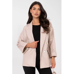 Moderní dámský kabát z ekokože je stylovým návrhem pro každodenní i kancelářské outfit. Vyrobený z vysoce kvalitního materiálu z viskózy a polyuretanu, vypadá elegantně a zároveň je pohodlný na nošení. Model standardní délky má skládací límec, který zdůrazňuje klasický střih. Dvojřadé zapínání na knoflíky dodává kabátu výrazný, moderní charakter. Imitace kapes slouží jako dekorace, zachovávají čistou, hladkou linii vpředu. Kabát má dlouhé rukávy, není podšitý ani vyplněný, takže se skvěle hodí na jaro/podzim/zimu jako vrstvený kousek. Hladký vzor ho činí univerzálním a snadno se kombinuje jak s látkovými kalhotami, tak s džínami nebo šaty. Je to ideální volba pro ženy, které ocení moderní styl, eleganci a nadčasový design.