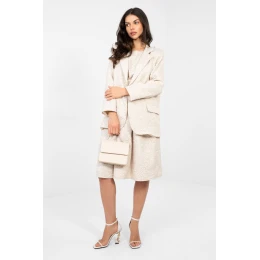 Elegantní dámský žaket standardní délky, který skvěle kombinuje klasiku s jemnou dávkou originality. Model se vyznačuje různorodou fakturou materiálu a efektním tiskem květin, který celkově dodává jedinečný ženský charakter. Vyrobený z vysoce kvalitní směsi polyesteru a viskózy, poskytuje pohodlí nošení, trvanlivost a estetický vzhled po dlouhou dobu. Dlouhý rukáv a skládací límce zdůrazňují nadčasový střih, a jednoradé zapínání na knoflík přidává eleganci a univerzálnost. Žaket má podšívku, díky čemuž skvěle padne na postavě a zaručuje pohodlí při nošení. Je to ideální volba jak do kancelářských stylizací, tak na speciální příležitosti, kdy chcete vypadat stylově a elegantně.
