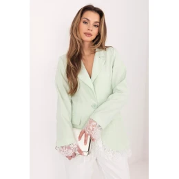 Elegantní dámský sako standardní délky navržené pro ženy, které ocení nadčasový styl a univerzálnost. Model s hladkým povrchem se skvěle hodí jak do práce, na schůzky, tak i na večírek nebo každodenní nošení. Sako má vestavěné ramenní polštáře, které jemně zdůrazňují siluetu a dodávají jí výrazný elegantní charakter. Otevírací klopy dodávají třídu a jednořadé zapínání na knoflík zajistí pohodlí a estetické přizpůsobení. Imitace kapes pod patkou zdůrazňují formální styl modelu, zachovávajíce přitom jeho lehkost. Dlouhý rukáv a spodní lem saka byly pečlivě opatřeny jemnou krajkou, která přidává ženský a originální akcent. Model má podšívku, co zvyšuje pohodlí nošení a zajišťuje, že sako se skvěle přizpůsobí postavě. Vyrobeno z vysoce kvalitní směsi polyesteru s přídavkem elastanu, zaručuje trvanlivost, pružnost a volnost pohybu. Ideální volba pro ženy, které hledají elegantní a zároveň univerzální sako na různé příležitosti.