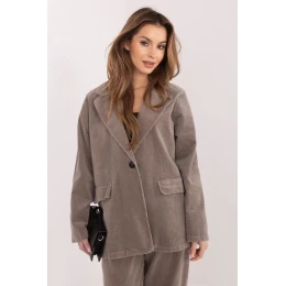 Elegantní dámský štručkový sakó v casualovém provedení, který se skvěle hodí jak do každodenního života, tak do práce. Tento model spojuje volnost s elegancí, díky čemuž si ho snadno sladíte s mnoha styly, od klasických látkových kalhot po džíny nebo olověnou sukni. Vyrobený z vysoce kvalitní bavlny s přídavkem elastanu zajišťuje pohodlí a jemnou pružnost, co se promítá do komfortu po celý den. Hladký vzor zdůrazňuje jeho univerzální charakter a štručková struktura dodává subtilní strukturu a módní akcent. Model má dlouhý rukáv a klasické límce, které dávají saku nadčasový styl. Standardní délka se dobře tvaruje na postavě a jednořadé zapínání na knoflík zdůrazňuje elegantní střih. Imitace kapes jsou estetickým završením, zachovávajícím minimalistický charakter designu. Ideální volba pro ženy, které oceňují pohodlí, styl a funkčnost ve svých každodenních i pracovních outfitech.
