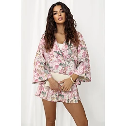 Elegantní dámský blejzer s výjimečným květinovým potiskem, který skvěle kombinuje klasiku s moderním stylem. Ideální na různé příležitosti, hodí se jak do práce, na schůzky, tak i na večírky, dodávající outfitu ženský charakter. Střih krásně zdůrazňuje postavu a jednoradé zapínání na dva knoflíky dodává celku nadčasovou eleganci. Široké rukávy délky 3/4 přinášejí lehkost a jemný módní akcent. Model z vysoce kvalitní směsi polyesteru a elastanu zajistí pohodlí nošení a dobře padne k postavě. Blejzer má podšívku, co zvyšuje komfort užívání a zajišťuje, že se skvěle drží na těle.