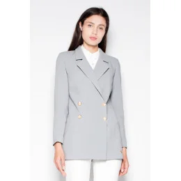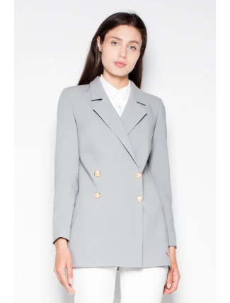 Skromné, ale velmi elegantní dvouřadové sako s dlouhými rukávy a zapínáním na knoflíky. Ozdobné knoflíky na rukávech, dokonale padnoucí na tělo.