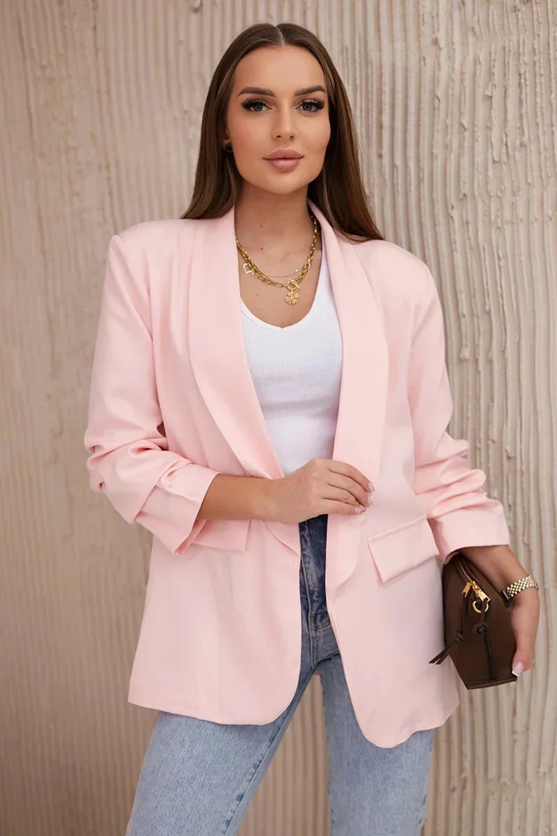 Představujeme vám elegantní bundu. Bunda bez knoflíků s předními klopami. Tento model bude skvělou volbou pro mnoho typů siluet a dodá každému stylingu nenucenou eleganci. Je základem každého šatníku a stylovým prvkem pro speciální úkoly - pro každé roční období a každou příležitost. Bunda je vyrobena z vysoce kvalitního materiálu. Bunda má podšívku. Velikost je univerzální a vyhovuje dámským velikostem S, M a L.