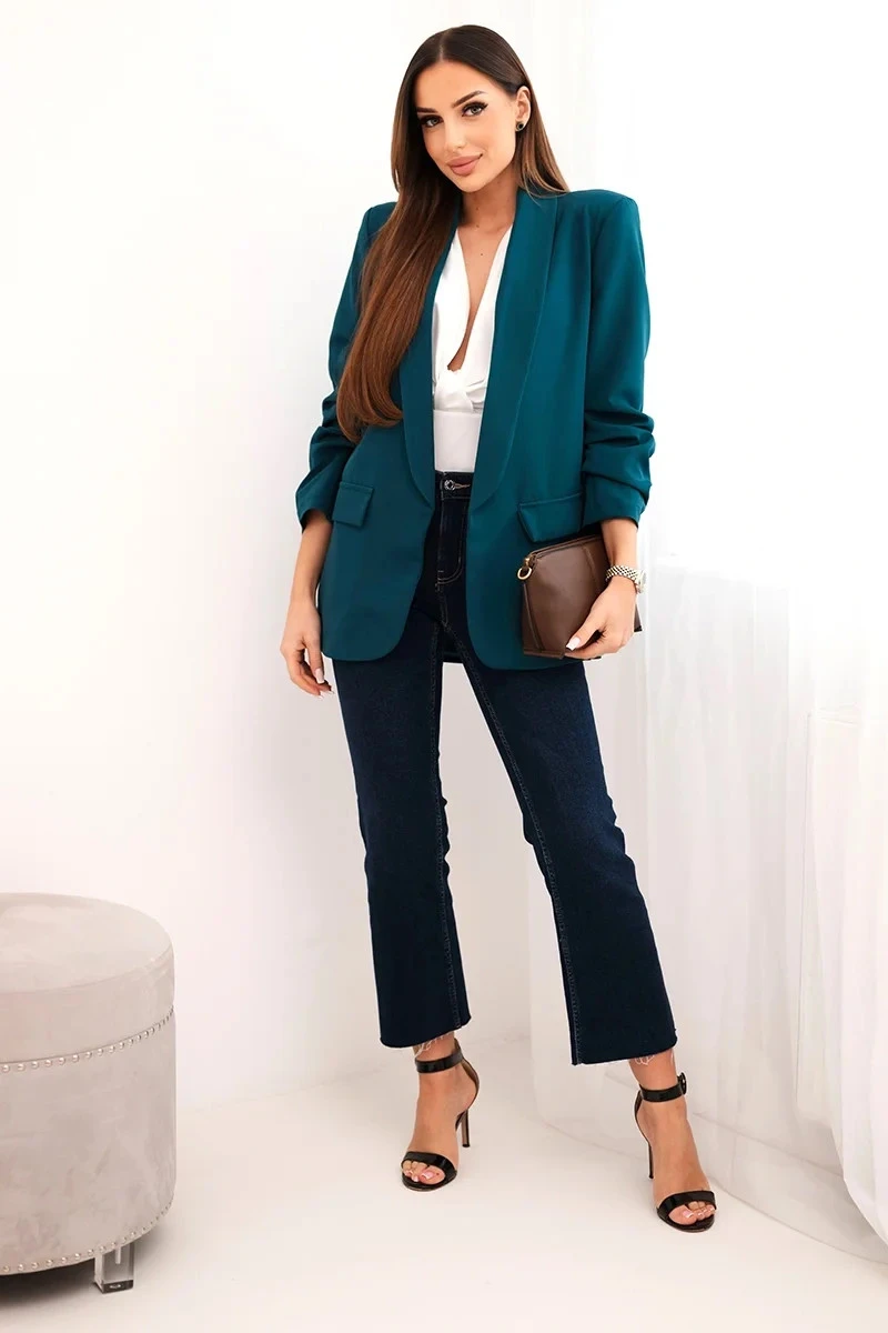 Sako s klopami elegantní tmavě modrozelená