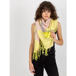 Světle růžová a žlutá dámská vzorovaná zimní šála .