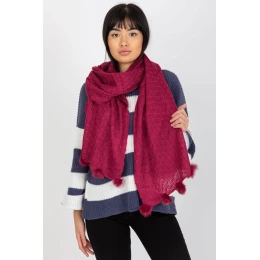 Ažurová dlouhá šála s ozdobnými bambulkami, ideální na zimu.