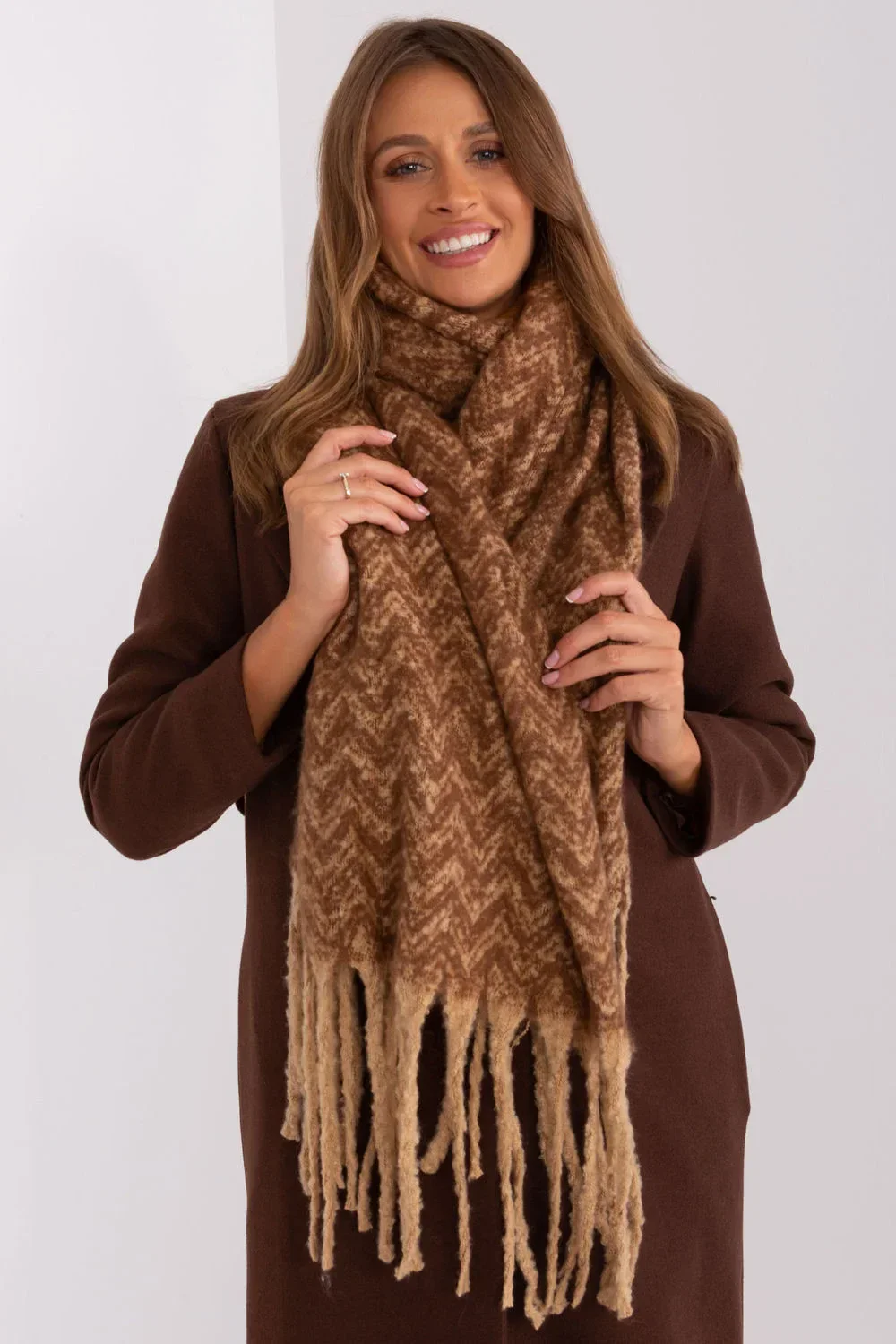 Tato dlouhá šála s geometrickým vzorem je dokonalým doplňkem vašeho podzimního a zimního šatníku. Je vyrobena z odolného polyesteru a je nejen praktická, ale také stylová. Geometrický vzor dodává šále moderní a atraktivní vzhled, takže se skvěle hodí k různým stylům. Střapce dodávají šále jemnost a lehkost. Délka šály umožňuje různé způsoby nošení, můžete si ji omotat kolem krku, nechat ji volně na ramenou nebo ji použít jako další vrstvu v chladnějších dnech. Ať už ji budete nosit jakkoli, tato šála bude stylovým doplňkem vašeho šatníku a dodá mu charakter a teplo.