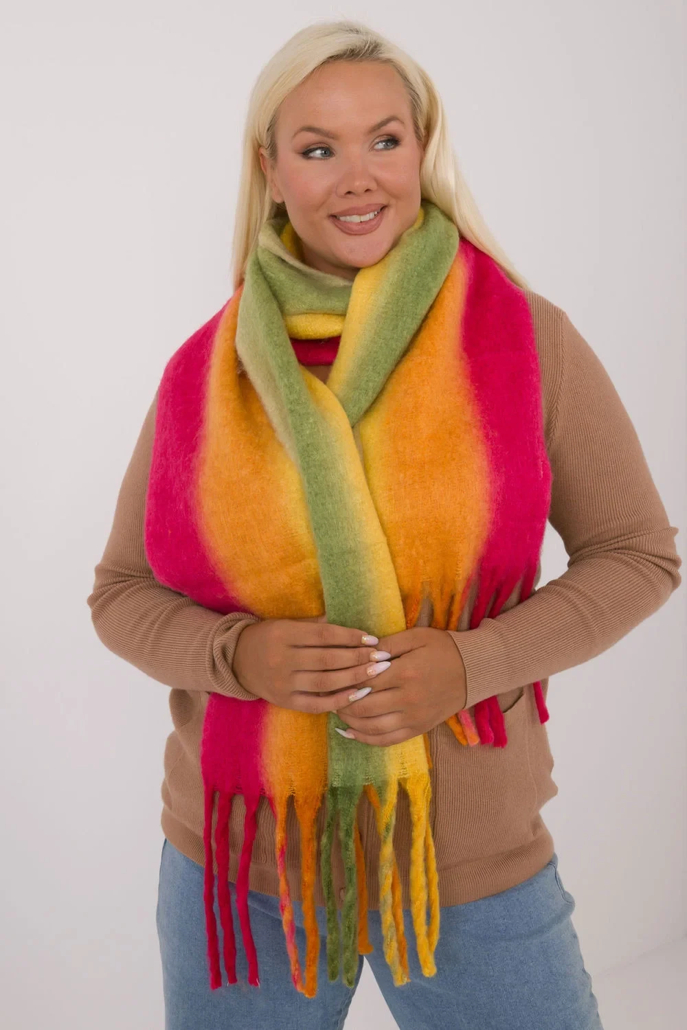 Tato stylová šála je vyrobena z vysoce kvalitního polyesteru, měří 194 cm a má jednobarevný vzor, který dodá každému oblečení elegantní a moderní vzhled. Je vyroben z lehkého, ale hřejivého materiálu, který poskytuje pohodlí a ochranu před chladem. Ozdobné střapce na koncích dodávají módní, výrazný prvek, který skvěle doplní ležérní i elegantnější oblečení. Tato šála je ideální pro podzimní/zimní sezónu a spojuje funkčnost s elegancí.
