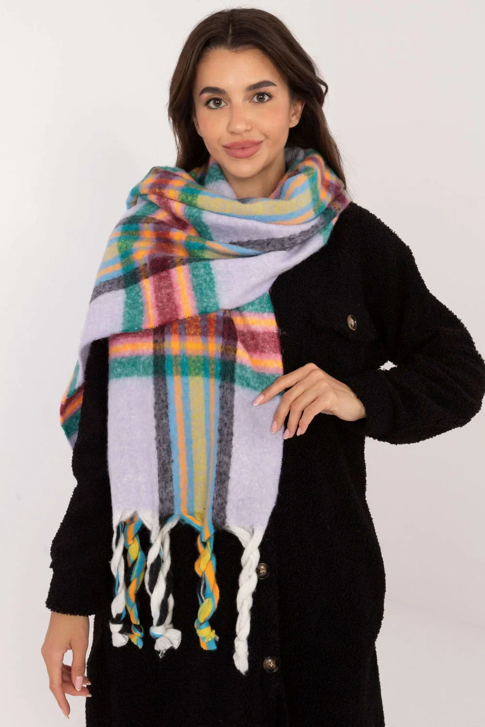 Elegantní šátek o délce 182 cm z polyesteru v károvém vzoru, ideální na chladnější dny. Vyrobený z materiálu vysoce kvalitního, poskytuje teplotu a pohodlí. Ozdobné řasy mu dodávají módní, stylový akcent, který obohacuje každý zimní outfit. Tento univerzální šátek spojuje funkčnost s elegancí, čímž se stává skvělým doplňkem k mnoha různým outfitům.
