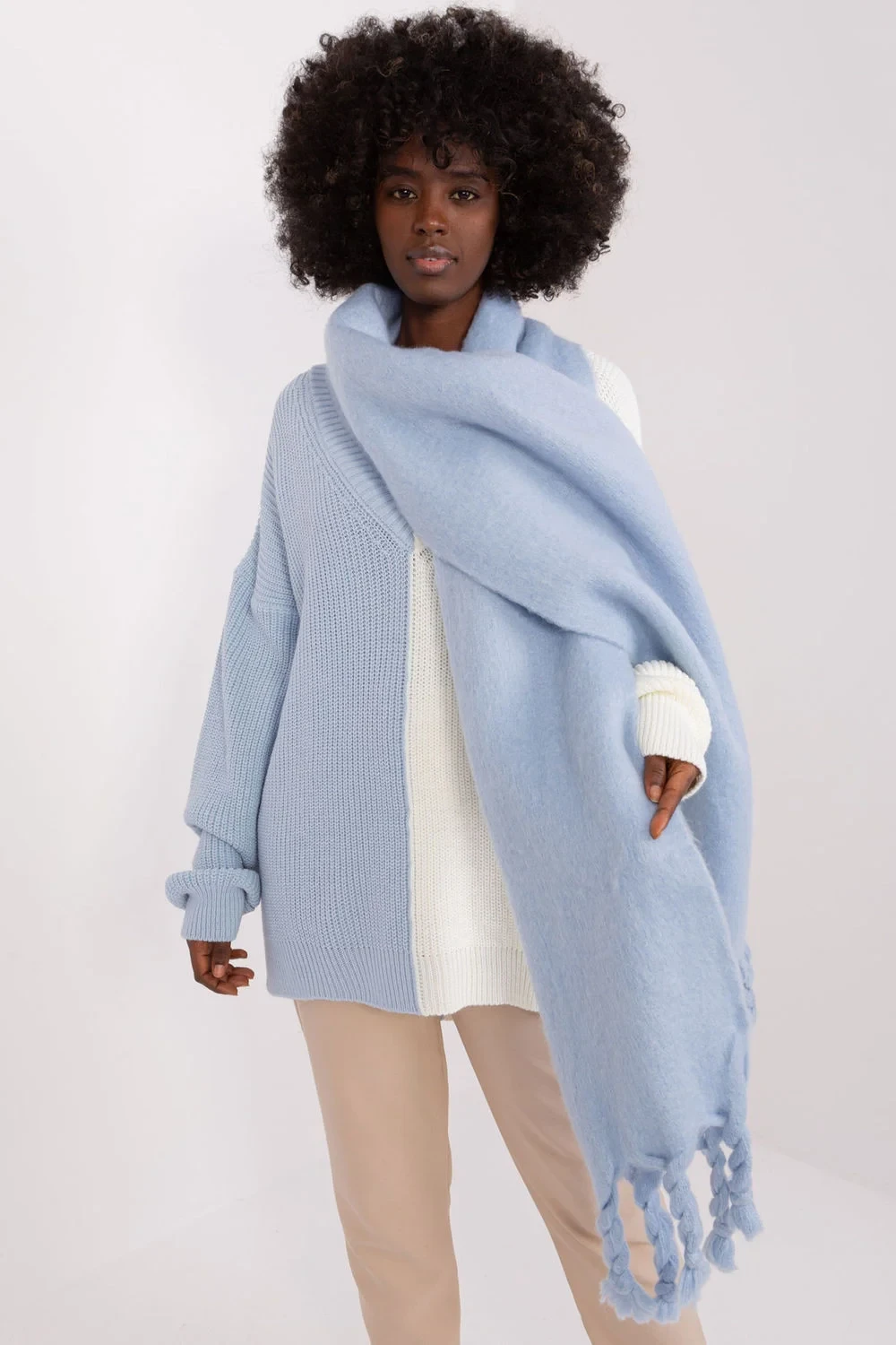 Tento dlouhý šátek s hladkou fakturou a délkou 210 cm je skvělým doplňkem k tvé podzimní a zimní garderobě. Vyrobený z odolného polyesteru, je nejen praktický, ale také stylový. Foulard mu dodává jemnost a lehkost. Délka šátku umožňuje různé způsoby nošení, můžeš si ho obvázat kolem krku, nechat volně viset na ramenou nebo ho použít jako další vrstvu v chladnějších dnech. Bez ohledu na to, jak ho nosíš, tento šátek bude stylovým doplňkem tvé garderoby, přidávajícím charakter a teplo.