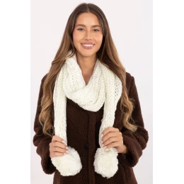 Měkký a útulný šátek s hladkou fakturou, vyrobený z vysoce kvalitního akrylu, který účinně chrání před chladem a poskytuje pohodlí při nošení v zimních dnech. Model má délku 186 cm a šířku 33 cm, co umožňuje volné obtočení kolem krku a vytváření různých stylizací. Na koncích šátku jsou roztomilé "pompony", které mu dodávají lehkost a módní charakter. Jedná se o ideální doplněk na chladné dny, praktický a zároveň stylový prvek zimního šatníku.