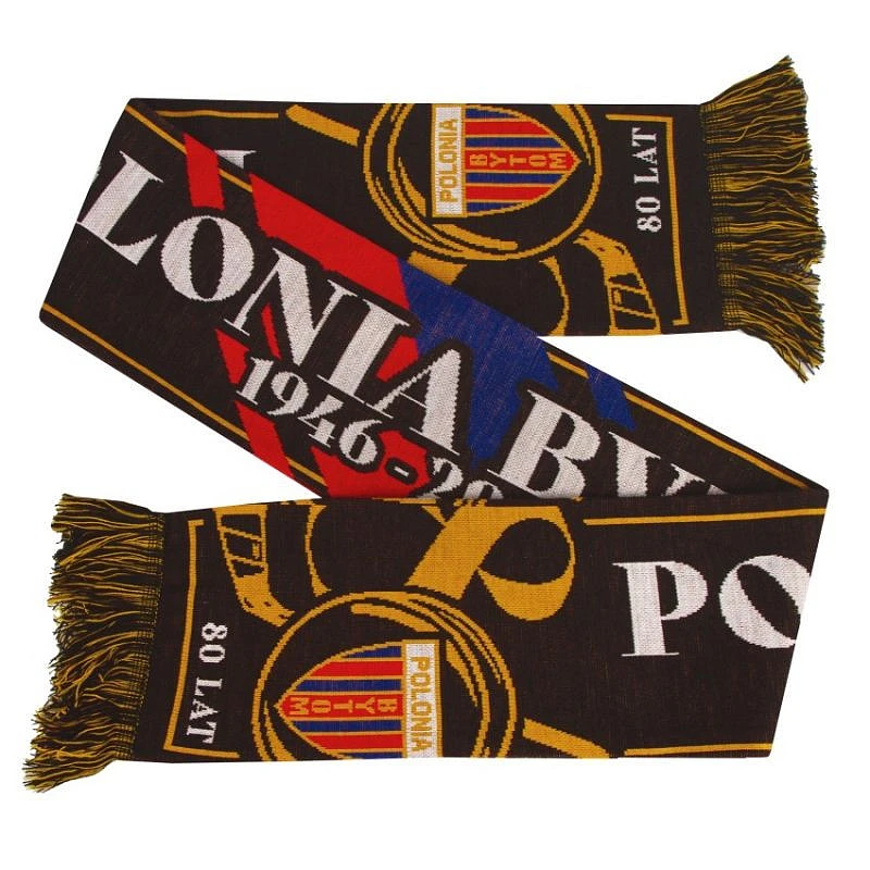 szal Polonia Bytom – 80 Lat Hokeja Jubileuszowy symbol dumy i tradycji Szal Polonia Bytom – 80 Lat Hokeja to wyjątkowy gadżet stworzony z okazji jubileuszu klubu, podkreślający jego bogatą historię i sportowe dziedzictwo. Elegancki design z motywami rocznicowymi, herbem Polonii Bytom oraz napisem „80 LAT” sprawia, że szal stanowi nie tylko praktyczny element garderoby, ale również cenną pamiątkę dla każdego kibica. Starannie dobrana kolorystyka i wyraziste detale nadają mu prestiżowy charakter. Główne cechy: Edycja jubileuszowa: Projekt upamiętniający 80 lat hokejowej historii Polonii Bytom. Klubowe emblematy: Herb drużyny oraz rocznicowe grafiki podkreślają przywiązanie do tradycji. Stylowy, kolekcjonerski design: Połączenie klasycznych barw z nowoczesnymi elementami graficznymi tworzy ponadczasowy wygląd. Komfortowy materiał: Miękka tkanina zapewnia ciepło i wygodę podczas meczów oraz codziennego noszenia. Szal Polonia Bytom – 80 Lat Hokeja to wyjątkowa pamiątka,