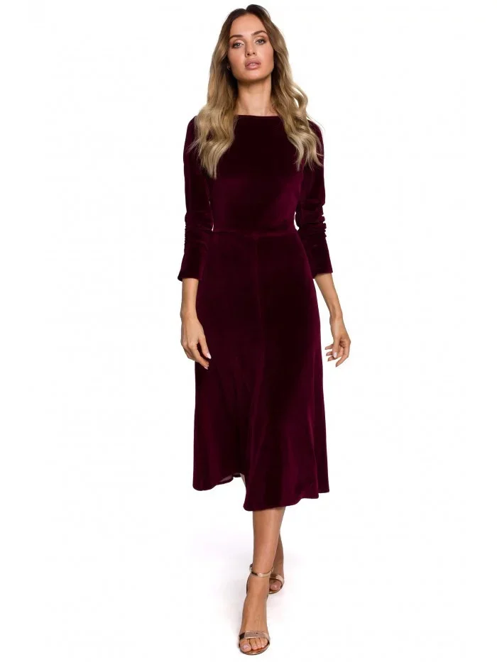 Sametové midi šaty M557 bordó - Moe