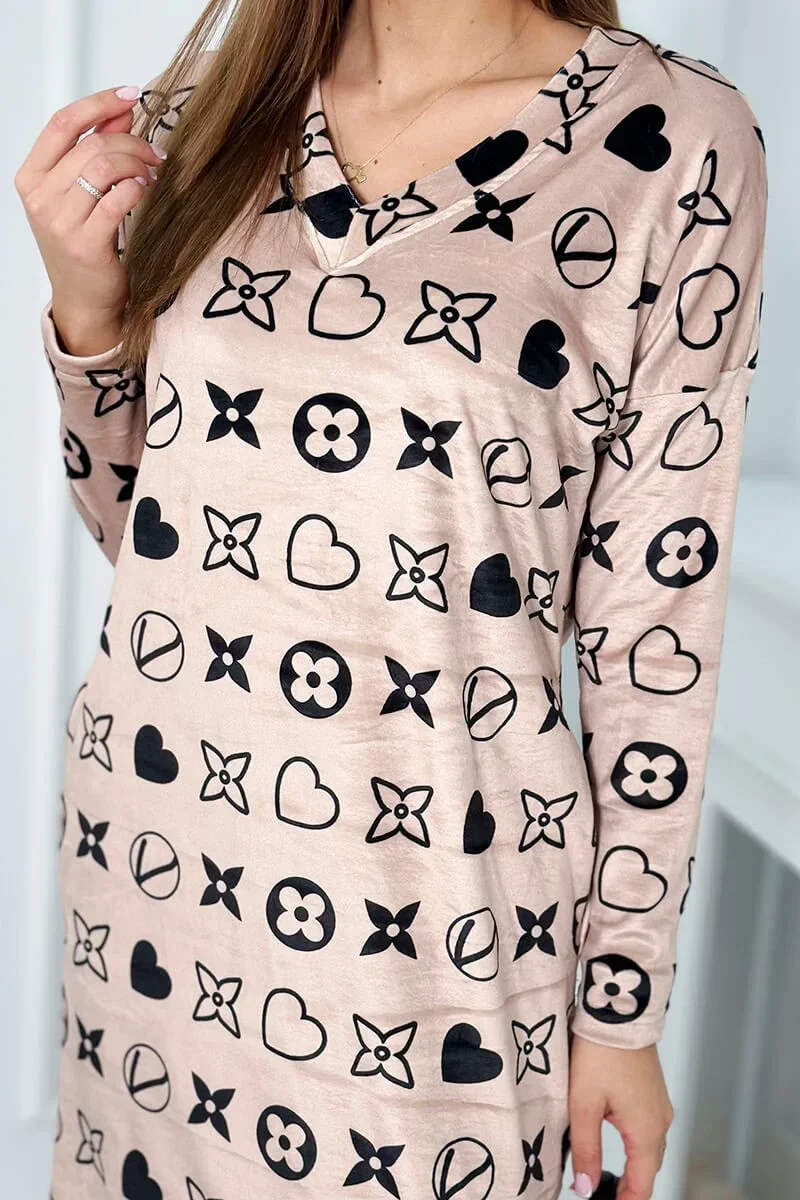 Sametové šaty s ozdobným vzorem béžový