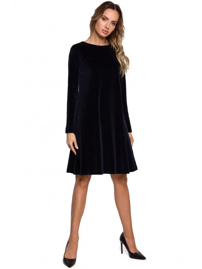 Sametové šaty volného střihu M566 tmavě modré - MOE