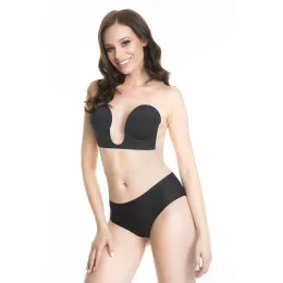 Samodržící podprsenka s pevným středovým střihem, ideální pro hluboké výstřihy. Hodí se i k oblečení, které odhaluje holá ramena nebo záda - podprsenka nemá viditelné zapínání ani ramínka. Košíčky na takzvaném bezpečném lékařském lepidle s kosticemi ve spodní části snadno přilnou k tělu, umožní pozvednout poprsí a večer je můžete rychle a bezpečně odstranit, opláchnout pod tekoucí vodou a připravit k opětovnému použití. Boční strany na průhledných křídlech ještě zvyšují pohodlí podprsenky. Podprsenka z kategorie Must Have - na večírek, Silvestra, rande, k neobvyklým halenkám a šatům.