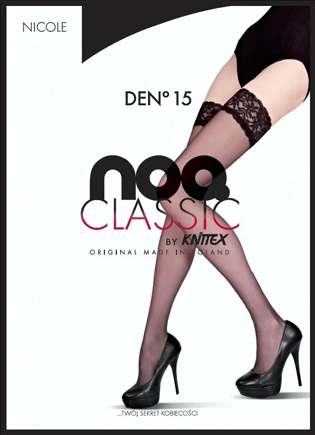 Punčochy jsou olemované efektní krajkou s květinovým motivem v barvě ecru. Na vnitřní straně je dvojitý silikonový pásek.