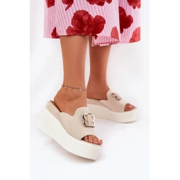 Stylové dámské pantofle na masivní platformě a klínu. Vyrobené z příjemného eko semiše. Měkká stélka je vyrobena z eko kůže. Vpředu ozdoba, která dodává eleganci. Tyto pantofle jsou skvělou volbou na letní, horké dny! Při výběru velikosti se řiďte tabulkou velikostí.
