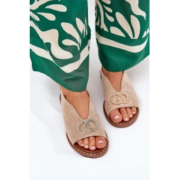 Eko semišové dámské sandály jsou elegantní nabídkou na teplé dny. Upevněny na plochém podpatku, zajišťují komfort a stabilitu. Zapínají se na nastavitelný pásek s přezkou, což umožňuje dokonalé přizpůsobení noze. Vpředu se nachází ozdoba, která dodává jemnou eleganci, což je činí skvělým doplňkem jak pro každodenní, tak pro formálnější styling.