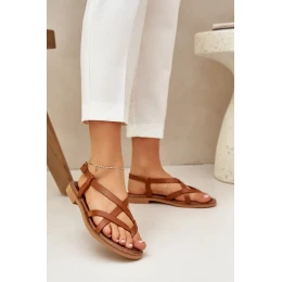 Ploché sandály vyrobené z přírodní kůže jsou elegantním návrhem pro teplé dny. Zapínají se na nastavitelný popruh s přezkou, co umožňuje ideální přizpůsobení noze. Propletené pásy jim dodávají decentní, ale zároveň moderní vzhled. Tyto sandály kombinují pohodlí s módním designem a skvěle se hodí jak na každodenní nošení, tak i do elegantnějších stylizací.