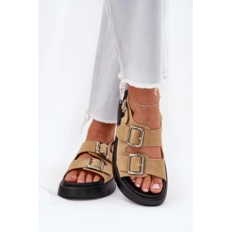 Dámské sandály značky Big Star vyrobené z přírodního semiše jsou elegantní volbou na teplé dny. Umístěné na platformě poskytují pohodlí a stabilitu po celý den. Tento model se vyznačuje dvěma nastavitelnými popruhy s přezkami vpředu, které umožňují ideální přizpůsobení, a zapínacím popruhem vzadu, což zajišťuje další stabilitu. Tyto stylové sandály budou skvělým doplňkem letních outfitů, spojují funkčnost s moderním vzhledem.