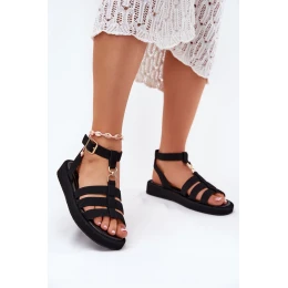Dámské sandály vyrobené z ekologického semiše. Umístěné na jemné platformě, poskytují pohodlí a stabilitu po celý den. Zapínají se na přezku s nastavitelným popruhem, což umožňuje ideální přizpůsobení se noze. Vepředu je decentní zlatý detail, který spojuje popruhy. Měkká stélka zajišťuje pohodlí při chůzi. Skvěle se hodí jak k šatům, tak k kalhotám, vytvářejí stylový vzhled na každou příležitost.