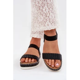 Dámské sandály z ekokože s proužkem vpředu. Umístěné na platformě s ozdobou. Model se zapínáním na elastický pás zajistí pohodlí a snadné obutí. Skvělé pro letní styly, skvěle ladí s šaty, sukněmi nebo kalhotami, nabízejí módní vzhled.