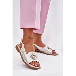 Dámské sandály z eko kůže jsou elegantní volbou na teplé dny. Umístěné na ploché podrážce nabízejí pohodlí a stabilitu po celý den. Vepředu je ozdobný detail, který dodává jemný šarm. Vložka z přírodní kůže zajistí pohodlí každým krokem. Zapínají se na sponu s nastavitelným páskem, umožňujícím ideální přizpůsobení noze.