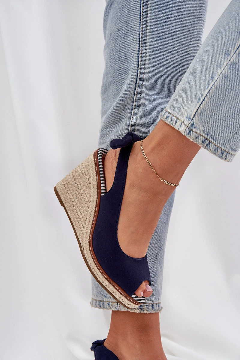 Sandály Na Klínu S Pletením Tmavě Modré Nanalis