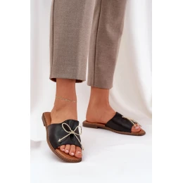 Sandály Na Ploché Podešvi S Ozdobnou Mašlí Černé Deonelis