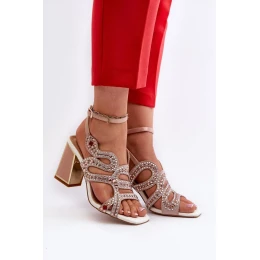 Sandály na podpatku CR952 béžovo-růžové - Step in style