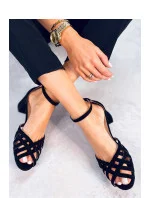Dámské semišové sandály s 8,5cm podpatkem. Díky pásku zdobenému třpytivými kamínky jim nelze odolat. Přezka u kotníku ji krásně zvýrazňuje a hranatá podrážka je trendem sezóny... Budete se v nich cítit jako opravdová hvězda! Vnější materiál - ekologický semiš.