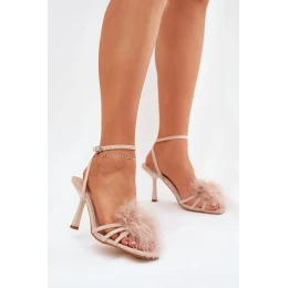 Elegantní dámské sandály z ekokože, skvělé na speciální příležitosti. Umístěné na elegantním jehlovém podpatku, vynikají decentní ozdobou z peří vpředu, co jim dodává lehkost a rafinovaný charakter. Nastavitelný pásek s přezkou umožňuje ideální přizpůsobení noze. Jedinečná volba, která skvěle doplní večerní a koktejlové kreace, přitahující pohled svým nezaměnitelným vzhledem.