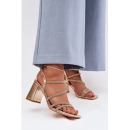 Dámské sandály na stabilním podpatku ve formě sloupku jsou ideální volbou pro ženy, které oceňují pohodlí a efektní vzhled. Model vyniká jemnými popruhy zdobenými třpytivými cirkony, dodávajícími elegantní charakter a decentní lesk. Zapínání na přezku s nastavitelným popruhem umožňuje přizpůsobení noze, zajistí pohodlí a stabilitu během chůze. Jedná se o stylové sandály, které se skvěle hodí na svatby, večerní vycházky, večírky nebo elegantní večeře, zdůrazňujíce výjimečný charakter stylizace.