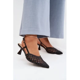 Dámské sandály vyrobené z dekorativního pletiva jsou stylovým návrhem na teplé dny. Zakryté, špičaté špičky zdůrazňují štíhlou linii nohy a dodávají botám elegantní charakter. Model umístěný na štíhlém podpatku jemně zjemňuje postavu, poskytujíc ženský vzhled. Zapínání na přezku umožňuje přizpůsobení noze, zvyšuje pohodlí a stabilitu při chůzi. Jsou to elegantní sandály, které skvěle doplní letní outfit, jak pro každodenní nošení, tak pro speciální příležitosti.