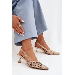Dámské sandály vyrobené z dekorativního pleteného materiálu jsou stylovým návrhem na teplé dny. Zakryté špičaté špičky zdůrazňují štíhlou linii nohy a dodávají botám elegantní charakter. Model s jemným podpatkem jemně zjemňuje postavu, což zajišťuje ženský vzhled. Spona umožňuje uzavření a přizpůsobení se noze, zvyšuje pohodlí a stabilitu při chůzi. Jsou to elegantní sandály, které skvěle doplní letní outfit, jak na každý den, tak na speciální příležitosti.
