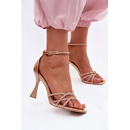 Elegantní dámské sandály jsou skvělou volbou na speciální příležitosti, jako jsou svatby, večírky nebo večerní vycházky. Usazené na úzkém podpatku krásně zdůrazňují siluetu a dodávají outfitům lehkost a ženský charakter. Pásky zdobené krystalky se efektně třpytí ve světle, dodávají celku šperkový lesk a přitahují pozornost. Zapínání na přezku s nastavitelným páskem umožňuje ideální přizpůsobení noze a zajišťuje pohodlné nošení. Toto je stylová nabídka pro ženy, které chtějí vypadat elegantně a výjimečně během důležitých událostí.