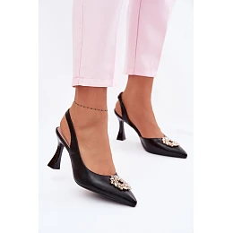 Sandály na podpatku s bižuterním ozdobením Vinceza 62277 Černé