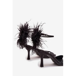 Elegantní dámské sandály Caelina v černém provedení s dekorativním peřím kombinují módní design, pohodlí a ženský vzhled. Peří na pásku dodává sandálům hravý a originální detail, zatímco špičatý tvar a střední podpatek opticky prodlužují nohy. Ideální volba na večírky, oslavy, rande nebo slavnostní příležitosti.