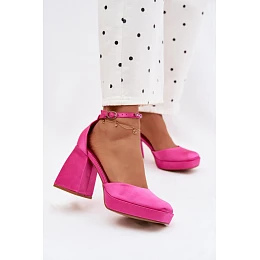 Sandály na podpatku s saténovým povrchem Fuksie Calistae