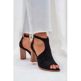 Sandály Na Podpatku Z Eko Semiše Černé Lanadriena