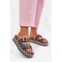 Stylové dámské pantofle na platformě, které se vyznačují atraktivním zdobením. Mají pásky s přezkami, které jim dodávají moderní charakter. Ideální na letní dny, dokonale se hodí k šatům a kalhotám, podtrhují každou stylizaci. Při výběru velikosti se řiďte tabulkou velikostí.