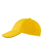 šestipanelový střih vyztužené 2 přední panely prošívaný, lehce prohnutý kšilt s konstrastním proužkem obšité větrací otvory potící páska velikost nastavitelná mosazným klipem