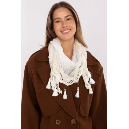 Elegantní a ženský trojúhelníkový šátek s různorodou texturou materiálu, vyrobený z jemné viskózy, která je příjemná na dotek a lehká. Model o délce 52 cm a šířce 152 cm se skvěle skládá na ramenou, dodávající styl každému outfitu. Šátek zdobí krajkové detaily a špendlíky s perlami, které mu dodávají subtilní, romantický charakter. Ideální na každý den i na speciální příležitosti, krásně doplní jak elegantní kabát, tak i casualovou bundu.