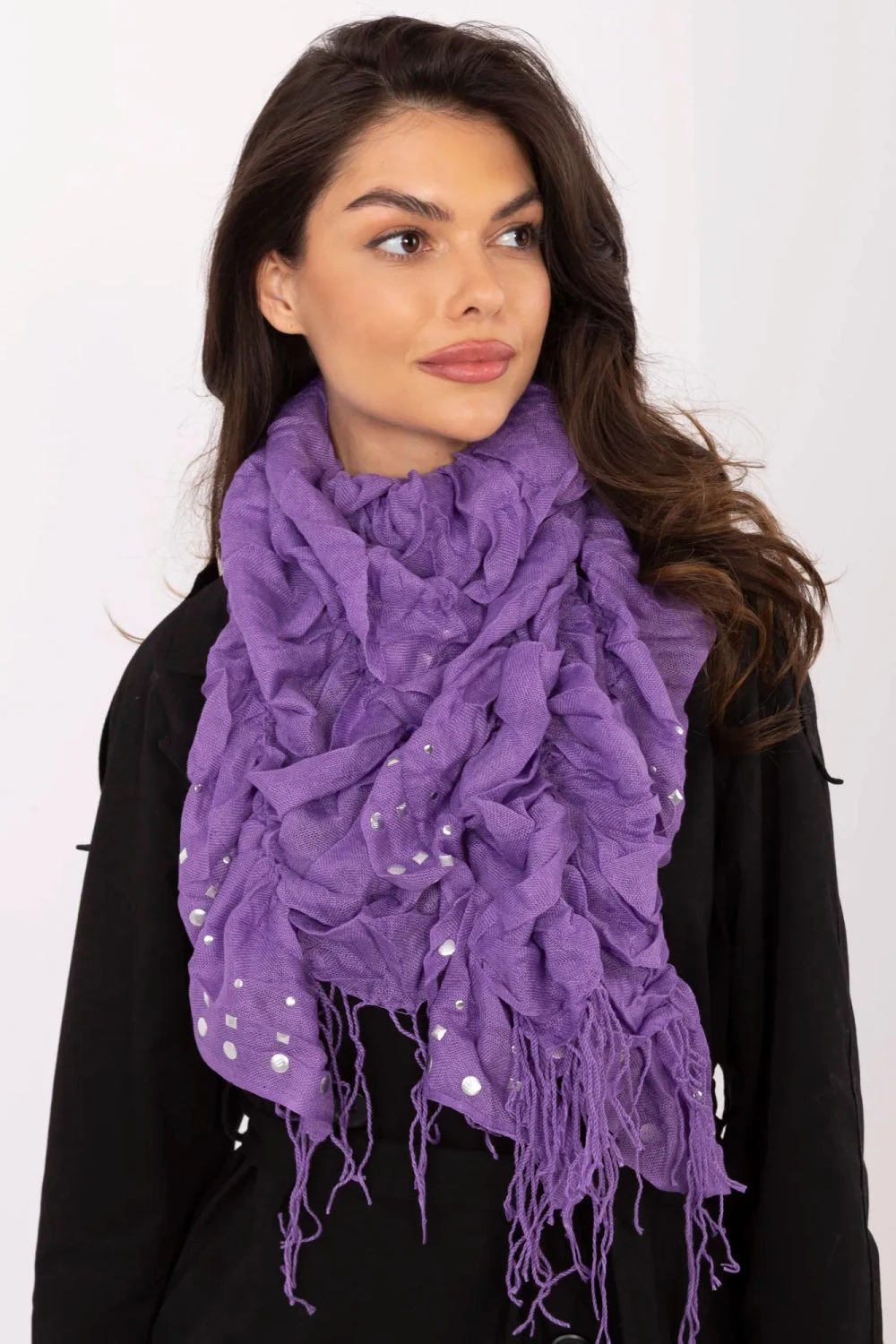 Elegantní šátek s frčkami a ozdobnými nitěmi je efektním doplňkem, který skvěle doplní jak denní, tak výraznější stylizace. Vyrobený z lehké a příjemné viskózy se hebkou texturou se jemně skládá na krku nebo ramenou, poskytujíc pohodlné nošení. Model o rozměrech přibližně 134 cm délky a 47 cm šířky nabízí mnoho možností stylizace, lze ho nosit klasicky, volně přehozený nebo uvázaný různými způsoby. Dekorativní frčky a decentní nitě dodávají šátku módní charakter a přitahují oko, činí ho výjimečným akcentem každé stylizace.