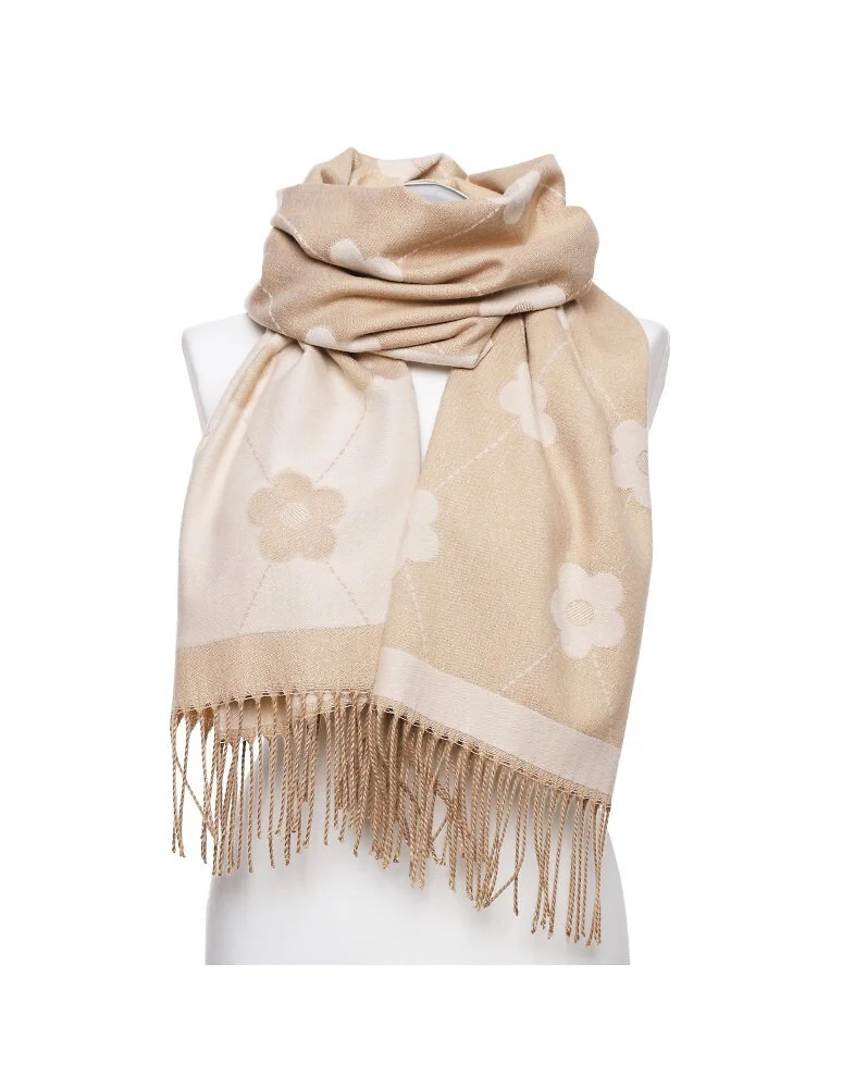 - jemné střapce dodávají šátku půvab a podtrhují jeho módní a zároveň klasický charakter