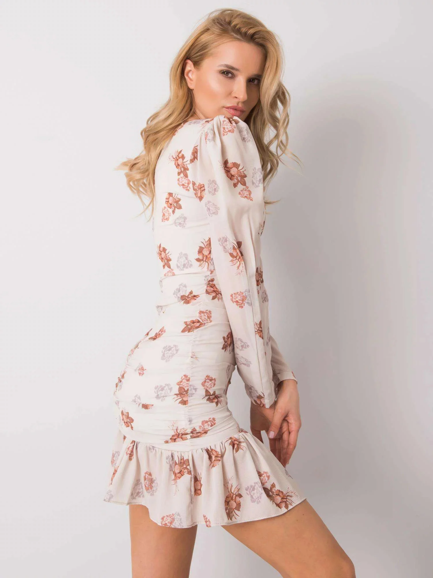 RUE PARIS Béžové šaty s květinovým potiskem.